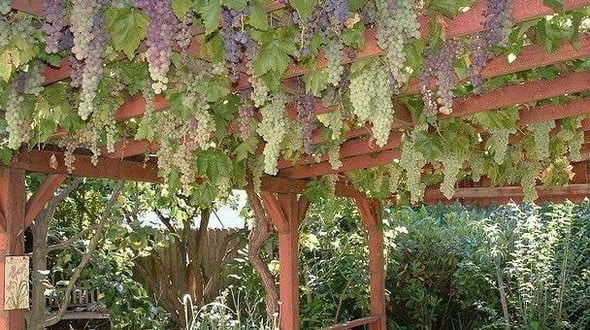 Пергола для винограда (арочная шпалера) — это тип опор, наиболее подходящий для сильнорослых гибридов, которым тесно на обычных одно-, двухплоскостных шпалерах. И мощный куст, выращиваемый на них, приходится подвергать зеленой обрезке в течение всего лета. На перголе каждый лист растения весь день освещается солнцем. Тепло необходимо для более быстрой выработки сложных молекул, из которых строятся все зеленые части винограда. На арочной шпалере грозди висят свободно, не соприкасаясь с лозой, хорошо проветриваются после дождя и меньше поражаются грибковыми инфекциями. Куст, расположенный на перголе, позволяет хорошо обработать от вредителей и болезней нижнюю часть листьев и грозди. Поэтому во многих странах столовый виноград выращивают на перголах, арках или беседках.