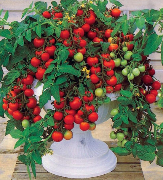 Маленький куст вырастает не более 20-35 см в высоту, это растение спокойно может развиваться в цветочном горшке, на балконе или подоконнике, при этом ему не требуется особый уход. Помидор превосходно растет в открытом грунте и приносит отличный урожай в виде маленьких плодов весом по 20-30 г. Томаты вырастают гроздьями, каждая из которых имеет по 10-12 плодов. С каждого кустика можно собрать до 1-1,5 кг съедобных продуктов.