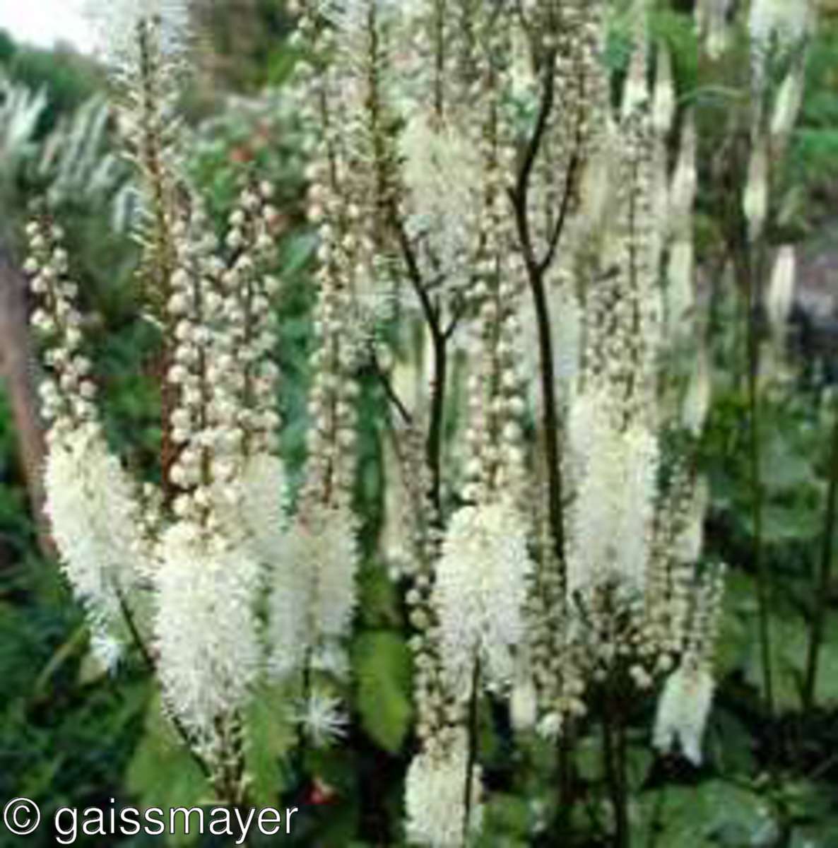 - Клопогон американский — многолетник с тёмно-зелёными листьями. Цветки небольшие бело-серые, собираются в кисточки. Цветёт с середины лета до начала осени.