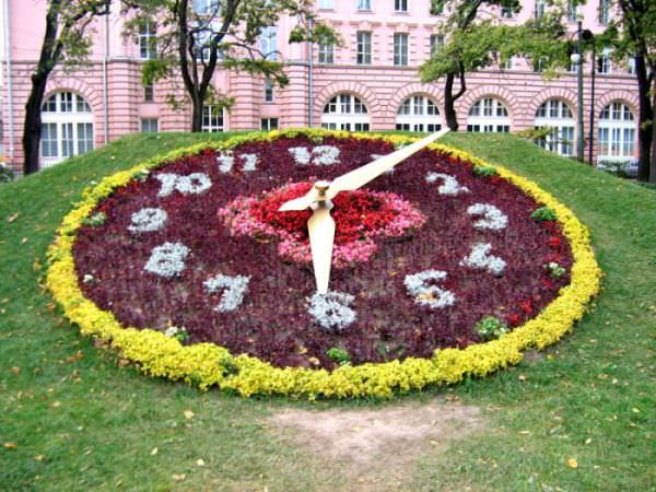 Цветочные часы есть во многих европейских городах. В большинстве случаев они представляют собой большую круглую клумбу-циферблат, на которой растут цветы, распускающиеся в разное время. Также есть настоящий часовой механизм с большими стрелкам. По сути, это интересная презентация идеи биоритмов цветочных растений.
