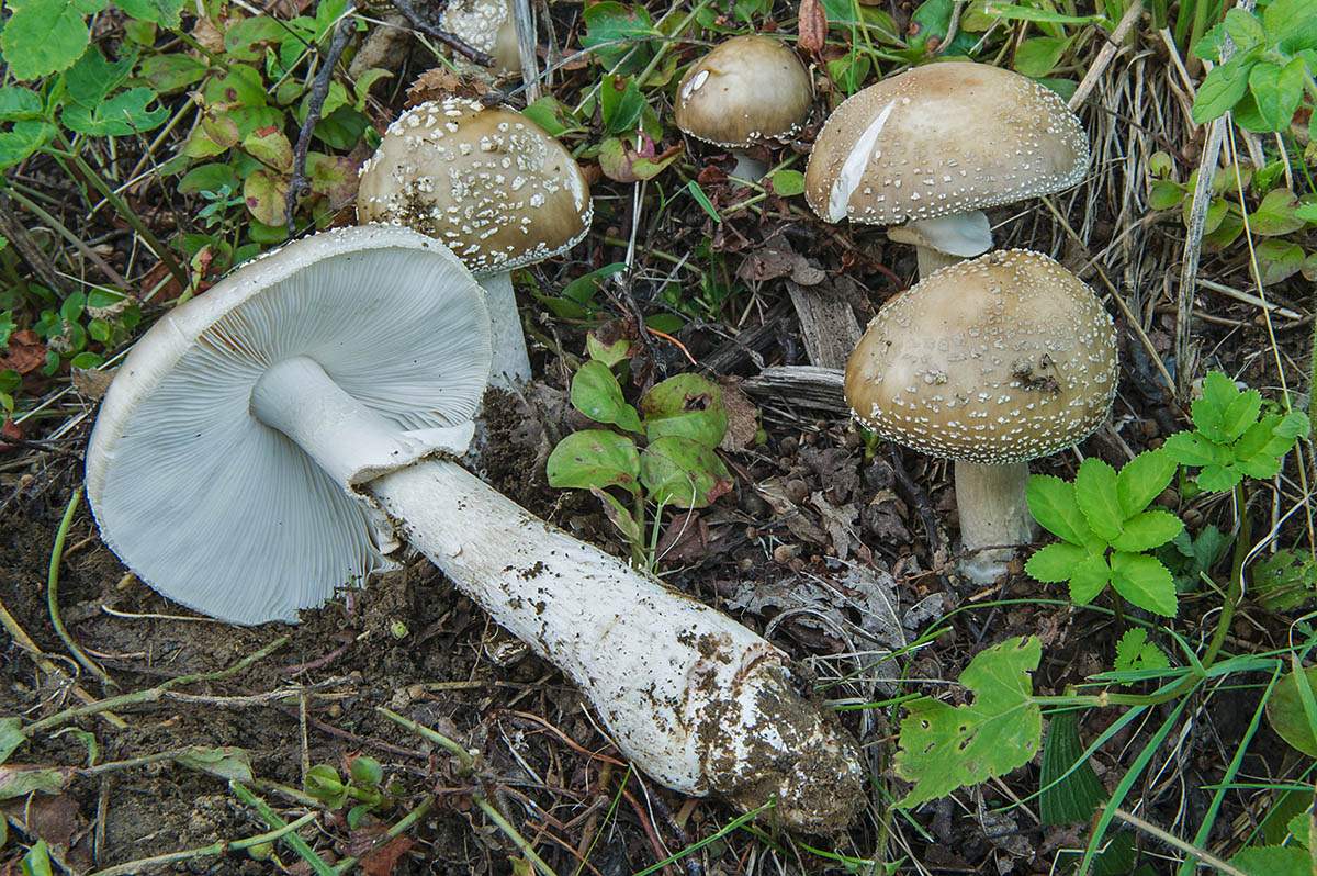 Этот вид выглядит своеобразно — сероватая шляпка молодого гриба выпуклая, но затем распрямляется, она окрашена в серый цвет и покрыта светлыми точками в виде бородавок. Его ножка достаточно тонкая и длинная, слегка утолщающаяся к основанию. Встречаются пантерные мухоморы исключительно в хвойных лесах с первой декады июля по середину октября.