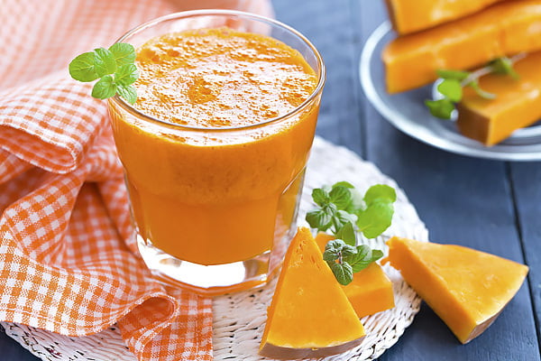 Пищевая ценность сока из тыквы выше — напиток содержит большое количество бета-каротина, а также витамин Е.